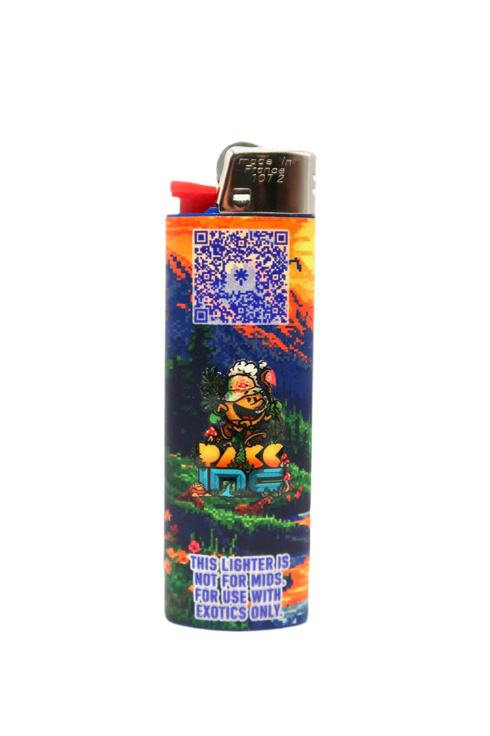 Light up with intention. This custom Pacc Inc. Bic lighter features a vibrant design on the front. Flip it over and you’ll find our embossed Wookman, standing tall with the warning loud and clear: